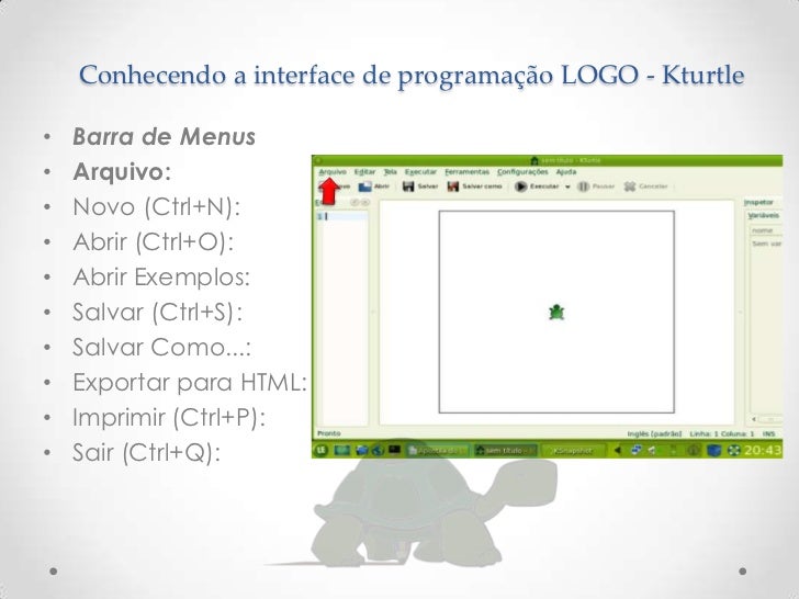 Software Kturtle no Ensino da . CONCEITOS DE SOFTWARES EDUCATIVOS E LINGUAGEM LOGO. Trabalho de conclusão de curso apresentado ao Curso de Ciência da Computação. Para superar esse limite, Papert e Minsky criaram a linguagem LOGO , que é menos adultocêntrica que a BASIC, segundo Bossuet.